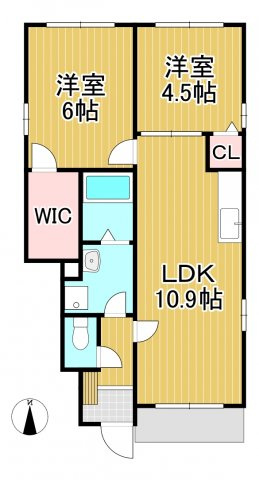 LDK 13.0帖/洋室 6.0帖/洋室 4.5帖 - 向き
