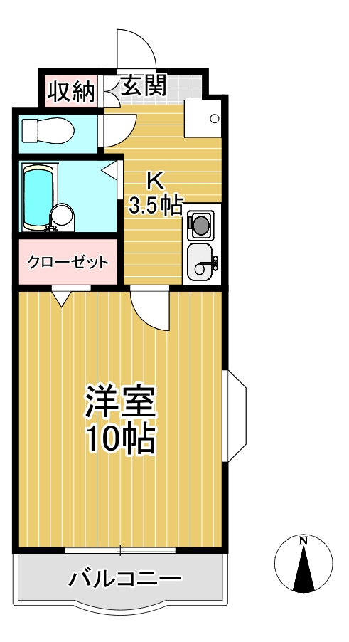 洋室 10.0帖/K 3.5帖 - 向き